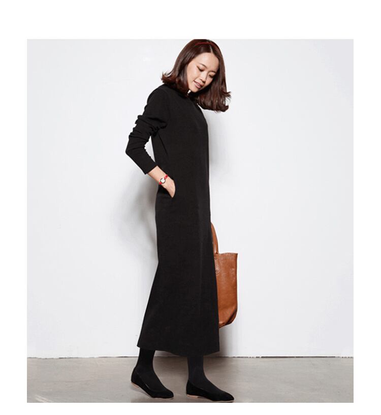 大人カジュアルにぴったりのシンプルなニットロングワンピース。