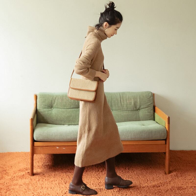 デイリーに使いやすいシンプルなデザインのニットロングワンピース。