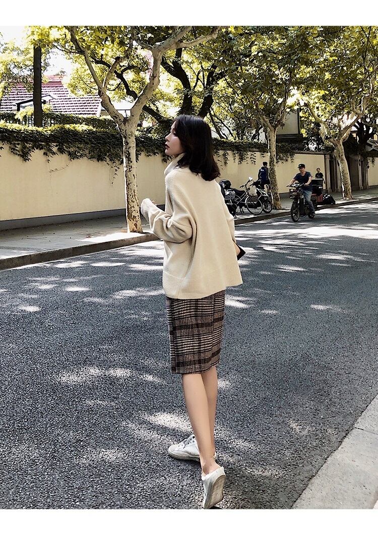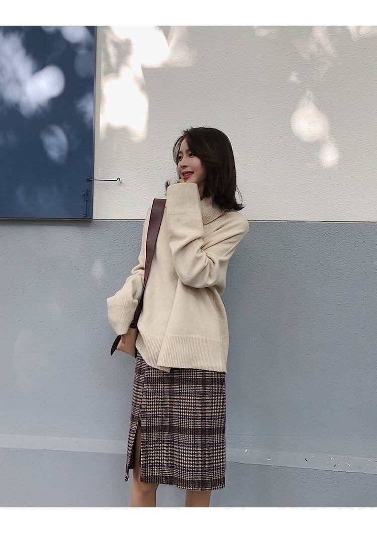 秋冬 NEW 人気 セットアップ 上下セット 2点セット ニット タートルネック ゆったり 無地 スカート チェック柄 タイト スリット パンツ ワイドパンツ クロップド 10269 | K.M-base