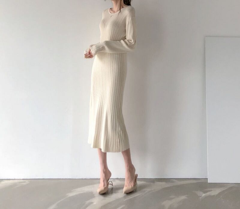 タイトすぎないシルエットで、上品に決まるリブニットワンピースです♪