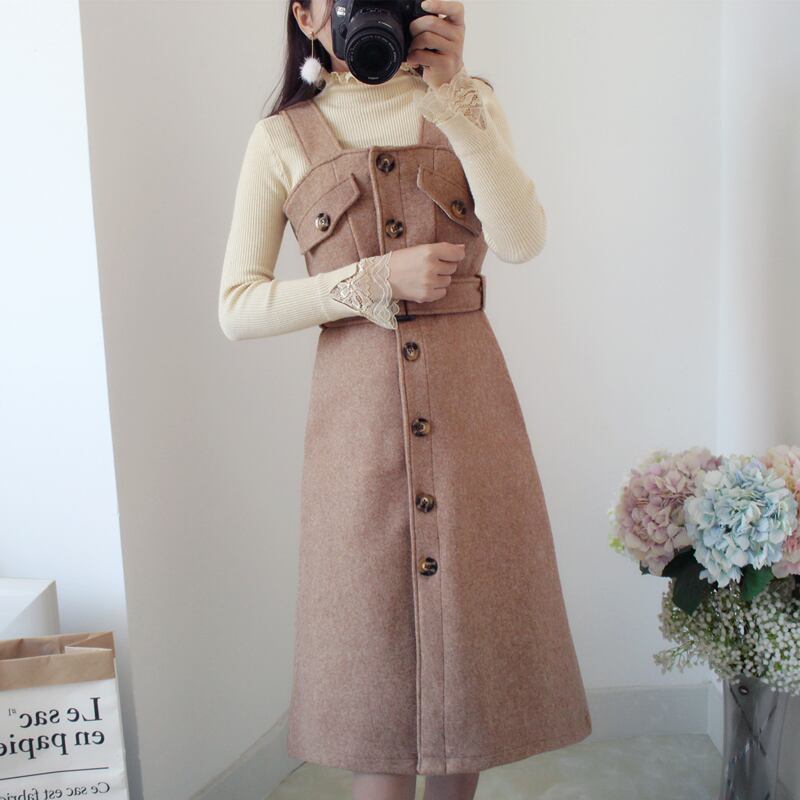 シックな色合いと大人っぽいミモレ丈で落ち着きのある着こなしに。