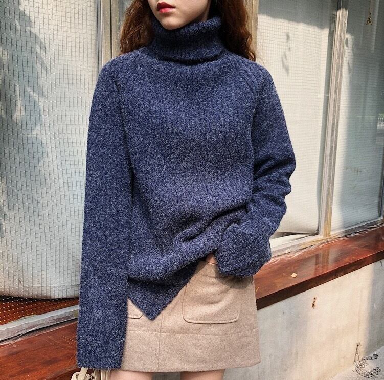 シンプルで大人っぽい雰囲気の長袖タートルネックセーターです。