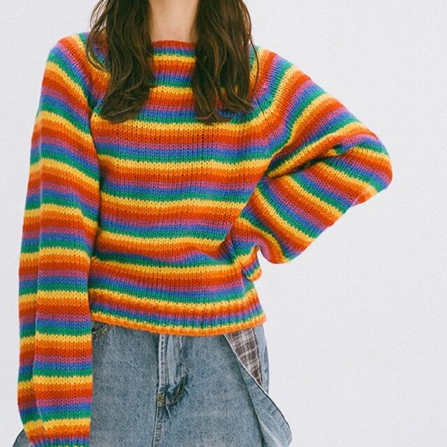 1点投入でいつものスタイリングがポップに決まるニットトップスです♪