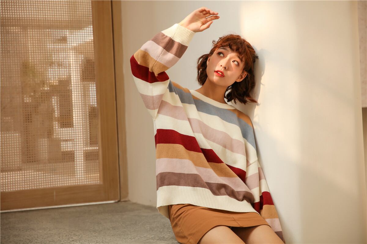 明るいカラーが元気でカジュアルな印象のクルーネックセーターです。