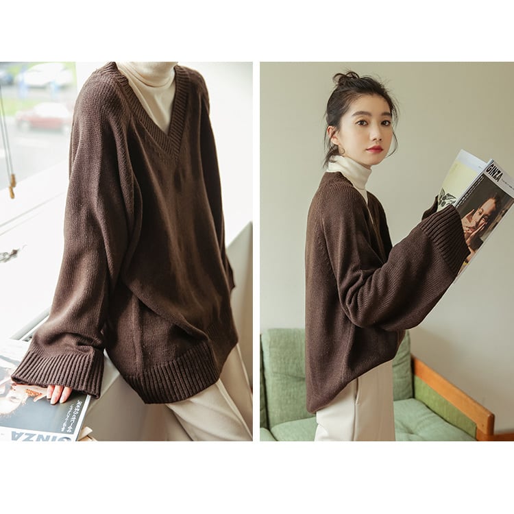 人気 レデイース 秋冬 ニット Vネック セーター ゆったり ざっくり オーバーサイズ 無地 シンプル トレンド 10351