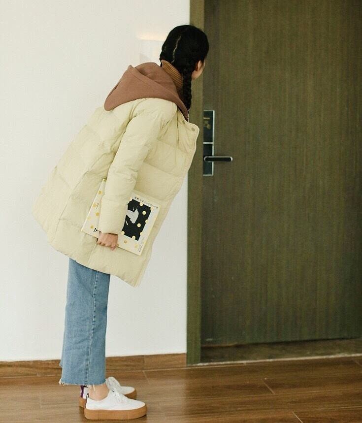 新作 売れ筋 冬 ロング丈 ダウン コート 無地 パーカー付 カジュアル シンプル くすみ色 ミドル丈 10354