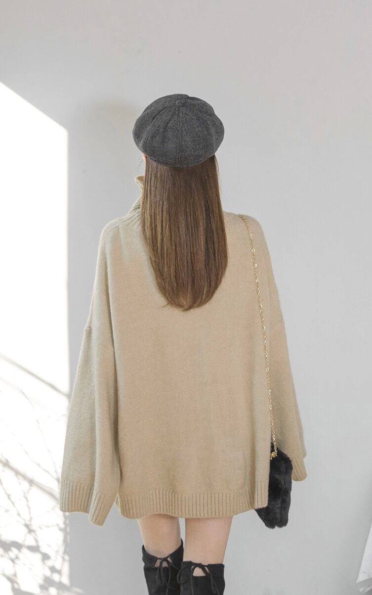 カジュアルでシンプルなタートルネックニットセーターです。