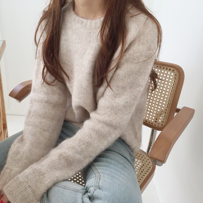 ふわふわと可愛らしく清楚な雰囲気のクルーネックモヘアセーターです。