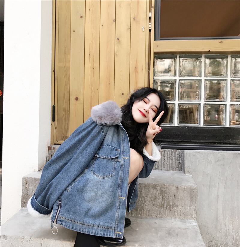 襟元のファーと内側のボアがとってもガーリーな人気のデニムジャケット♪