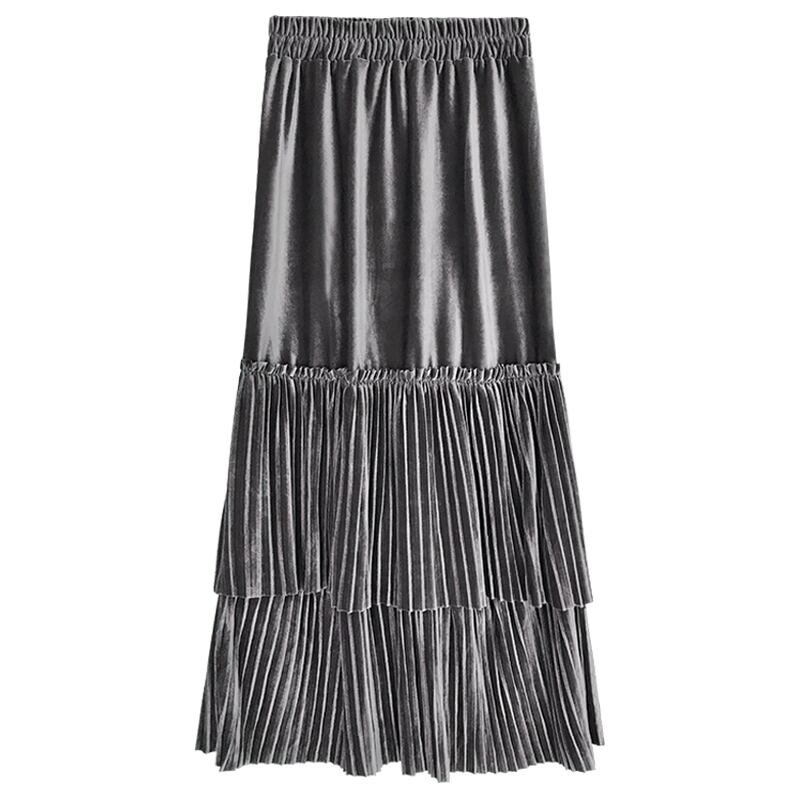 光沢のあるベルベット生地で上品さを演出しながらも、プリーツで可愛く仕上がる優秀アイテムです。