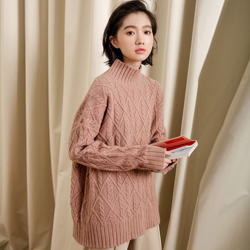 タートルネックで、首元まであったかなカジュアルニットトップスです。