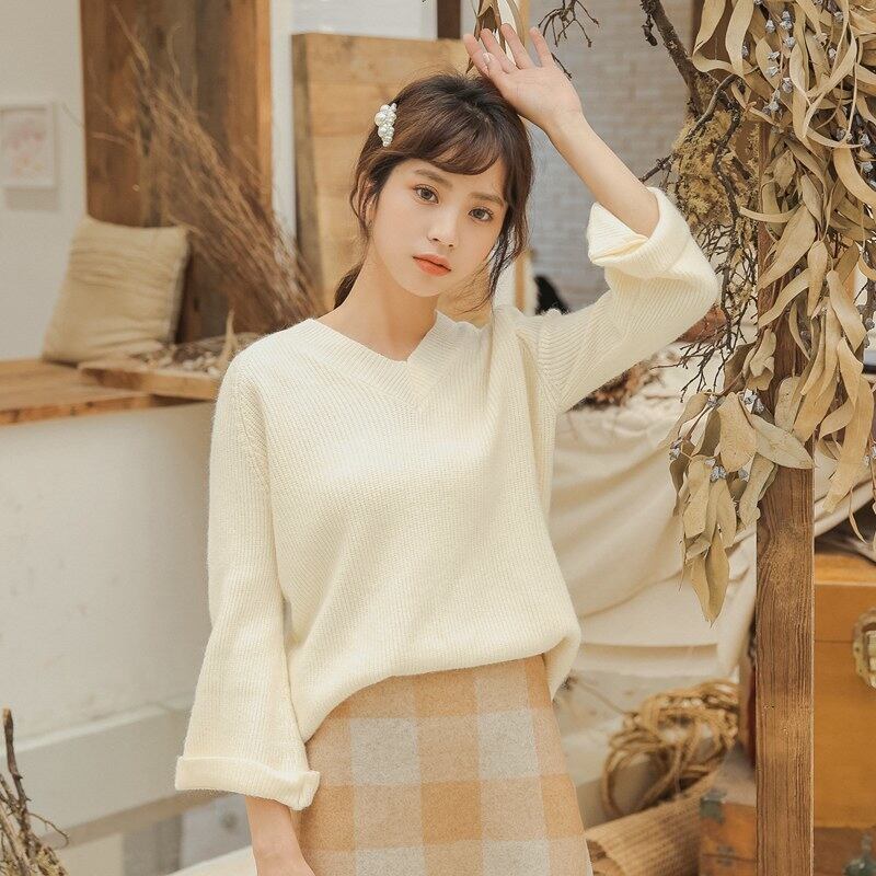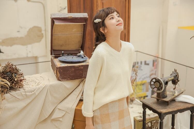 襟元はVネックで鎖骨まわりをきれいに見せてくれます。