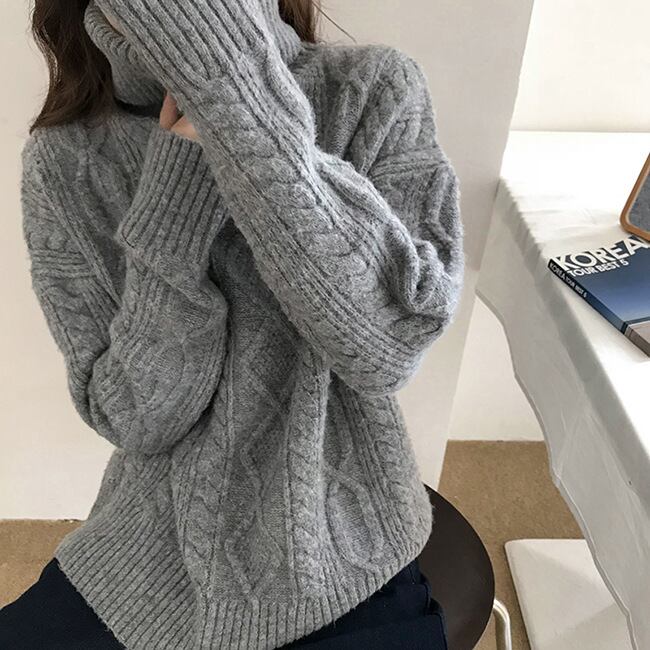 タートルネックで首元まですっぽり包み込むデザインのニットトップス。