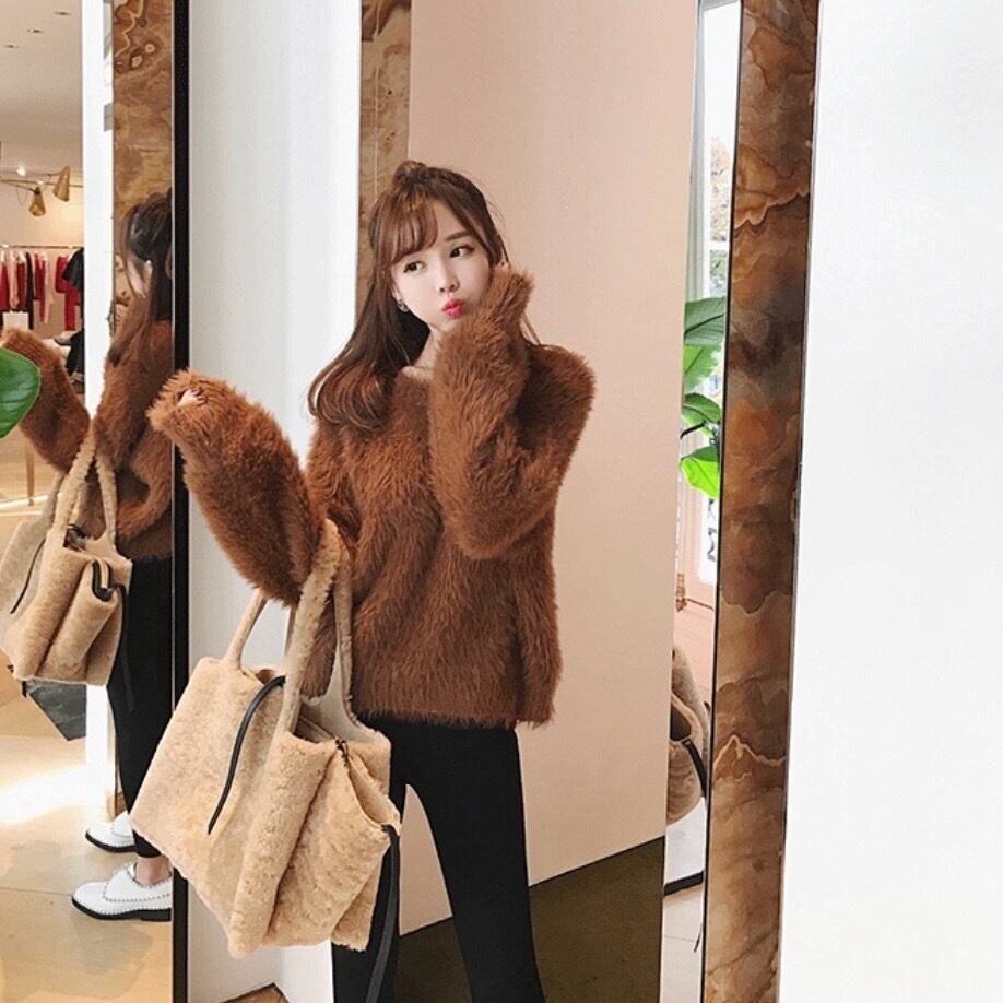 たっぷりの毛並みでゴージャス感のある、大人カジュアルなクルーネックセーターです。