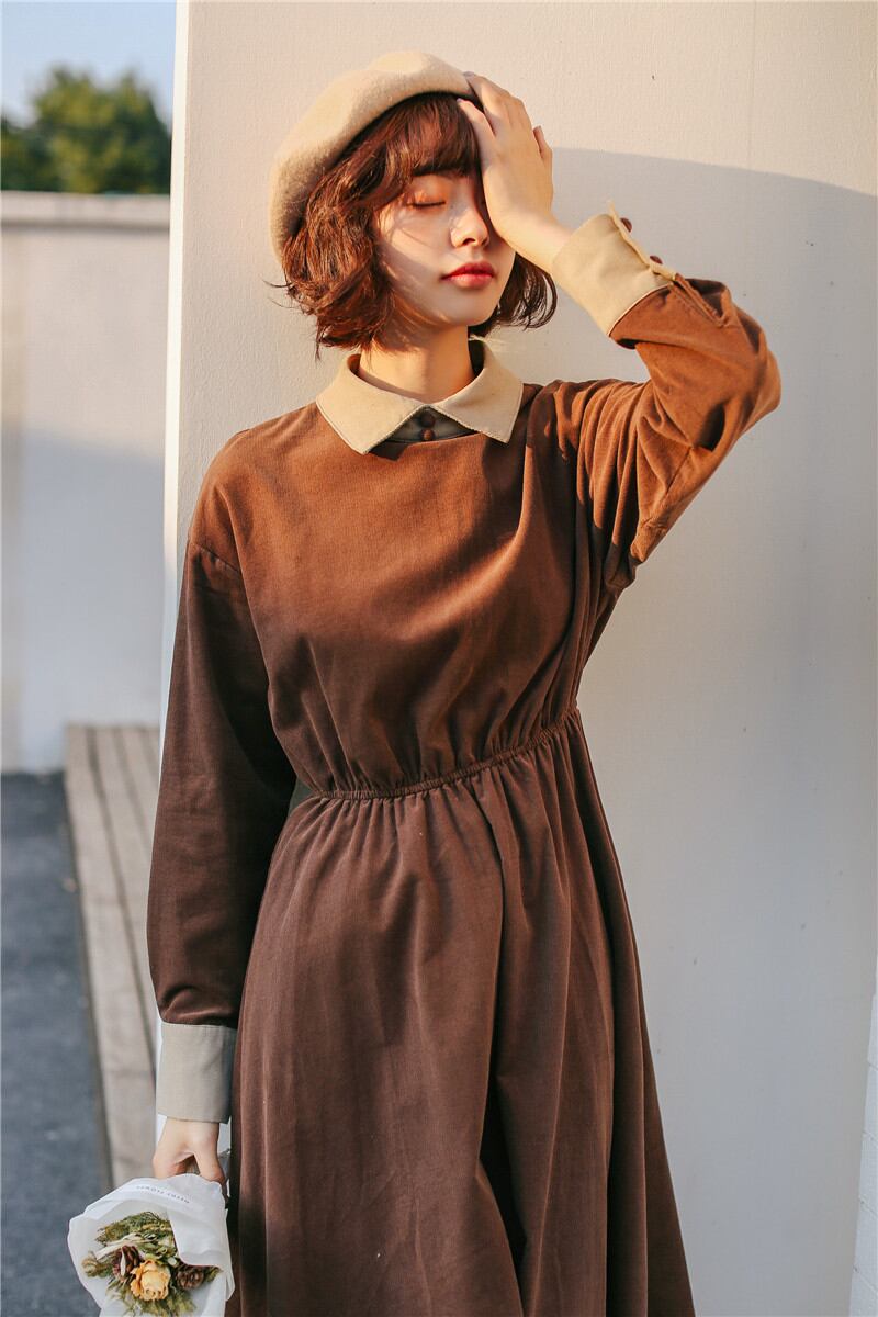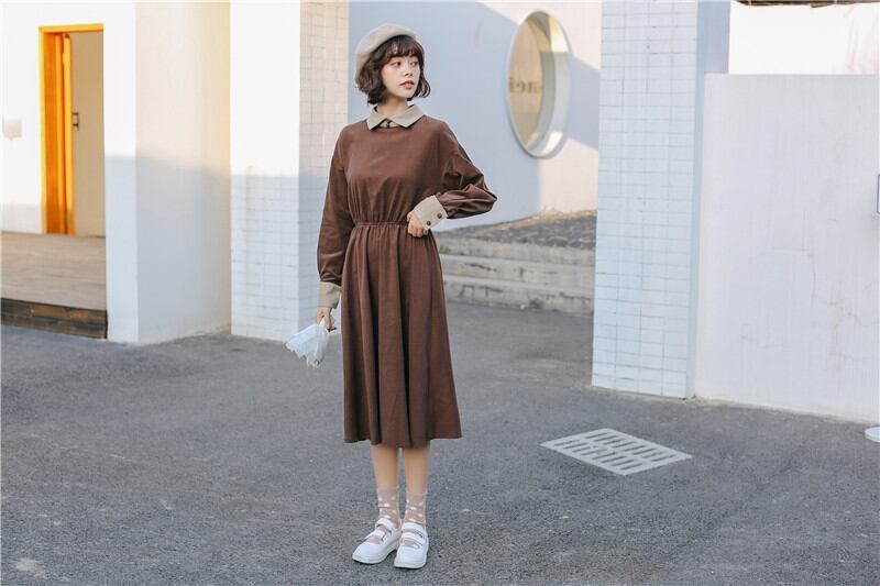 レトロで落ち着いた雰囲気のガーリーな膝下丈ワンピースです。