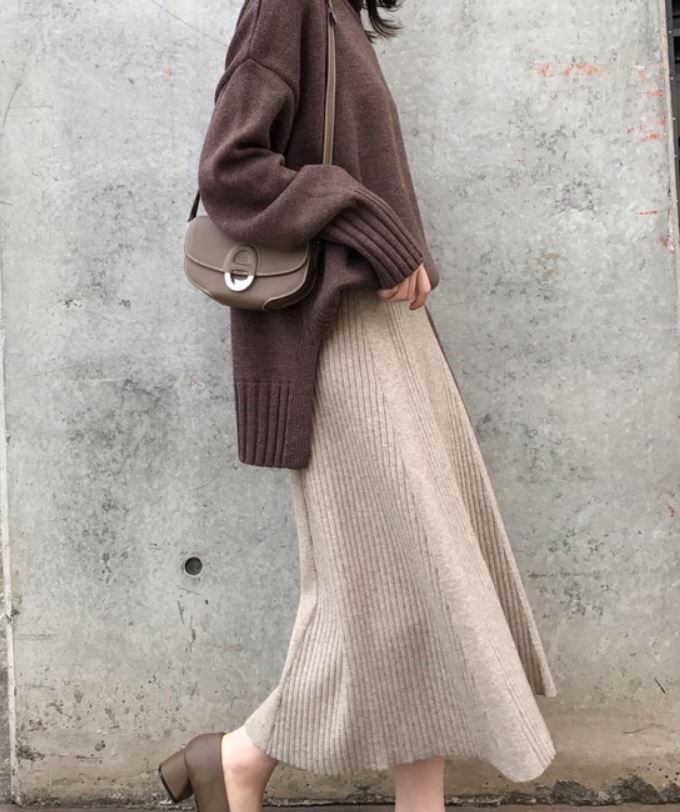 ふんわりとしたAラインのシルエットがフェミニンなニットスカート♪