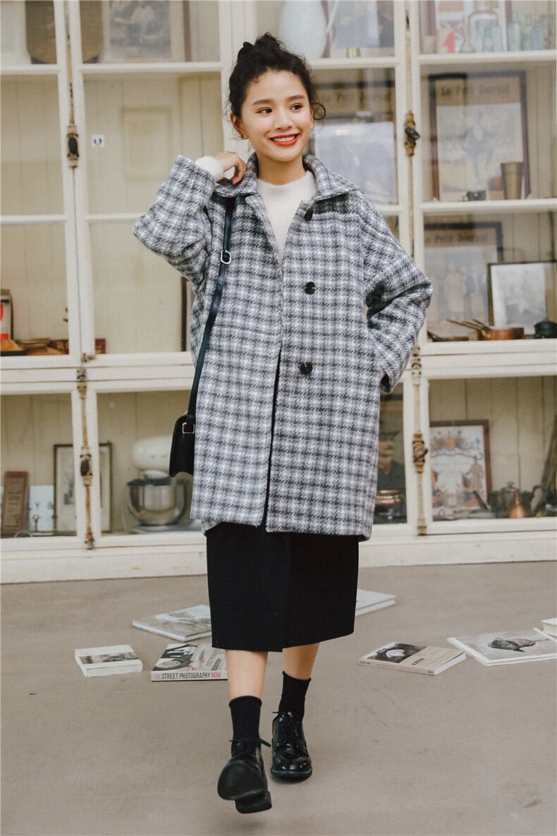 トレンドのチェックがレトロキュートな雰囲気のコートです。