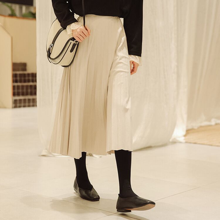 プリーツ仕立てで甘くなりすぎず、大人っぽい印象のシフォンスカートです。