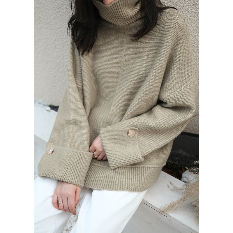 ルーズなシルエットで女性らしくゆったりと着用できるシンプルきれいなニットです。