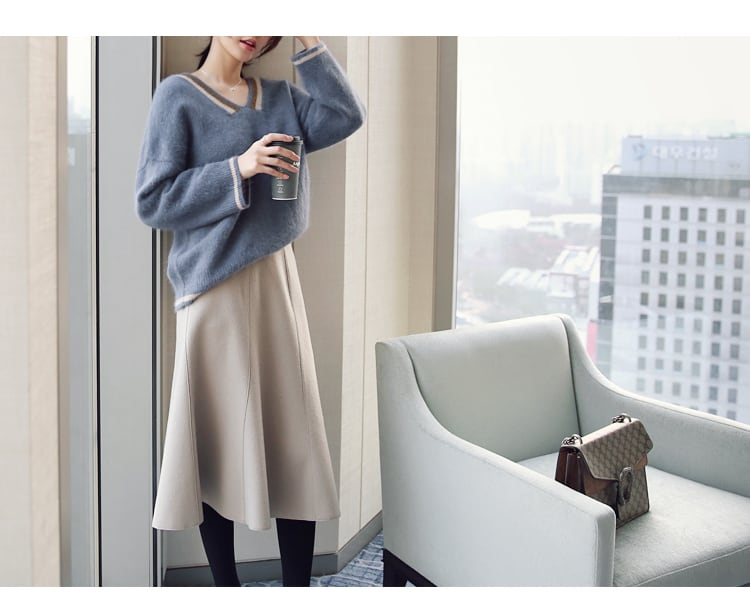 人気 レディース 秋冬 ニット セーター モヘア 両Vネック ライン ゆったり 無地 トレンド 上品 カジュアル 10514
