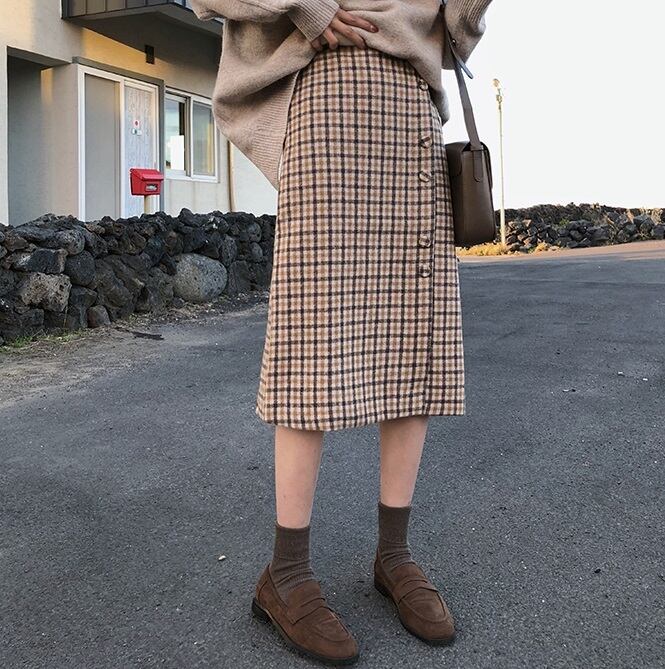 トレンドライクなチェック柄とやや起毛感のあるファブリックで、大人顔に仕上げたスカートです♪