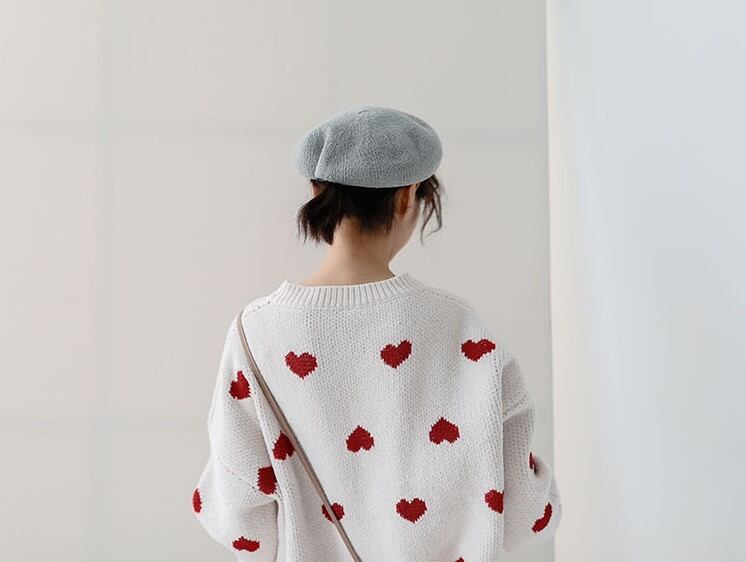 彼とのデートにもぴったりな、ハート柄が可愛いニットプルオーバー。