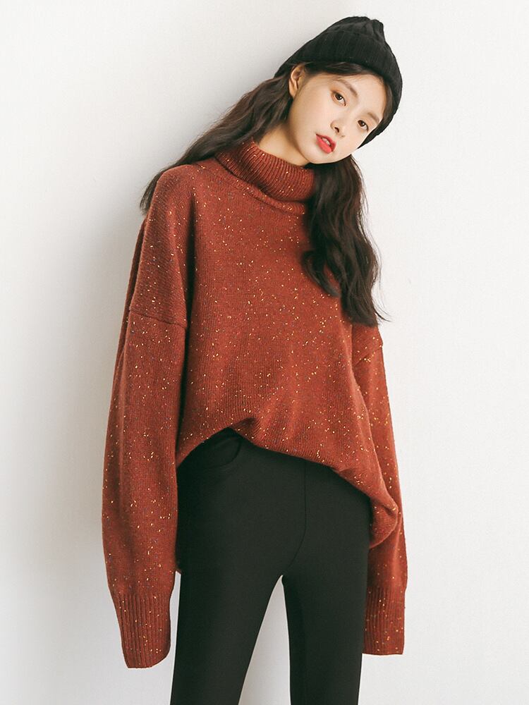 タートルネックタイプで、首元の暖かさをキープしつつ小顔効果も期待できるベーシックニットです。