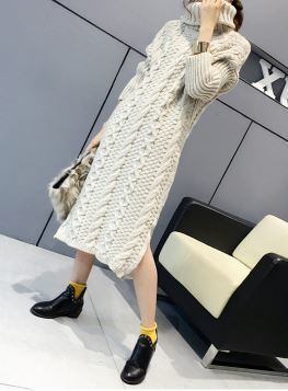 トレンド 冬物 売れ筋 ニット ワンピース タートルネック オフタートル ケーブルニット ロング丈 ゆったり カジュアル フェミニン ドロップショルダー 10543