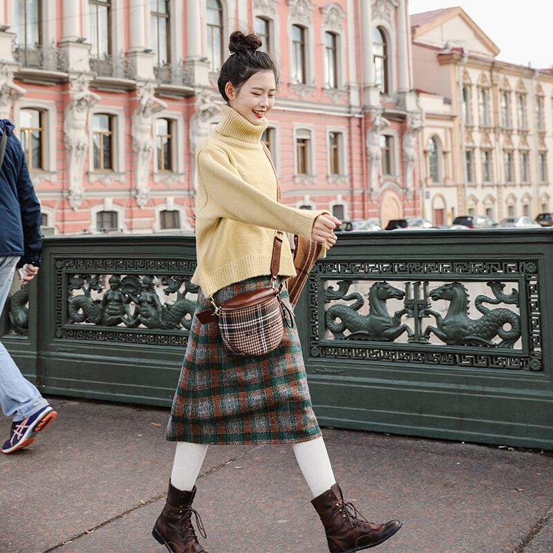 ウール調の温もりのあるファブリックで秋冬にぴったりのハイウエストスカートです◎