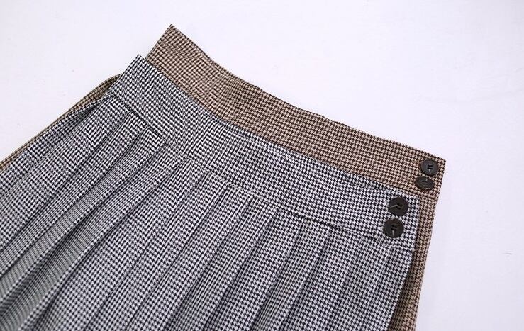 冬 オススメ プリーツスカート スカート 千鳥格子 チドリ ミモレ丈 フレア ハイウエスト ガーリー カジュアル 10563