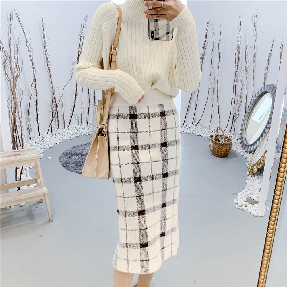 トレンドのチェック柄がガーリーなニットスカート♪