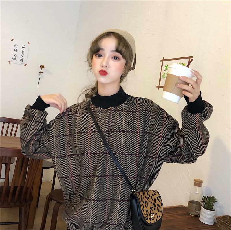 冬 人気のお品 プルオーバー トップス チェック柄 長袖 ゆったり カジュアル ガーリー 10584