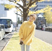 ライトなカラーで暗くなりがちな秋冬コーデにぴったりのオススメニットです!