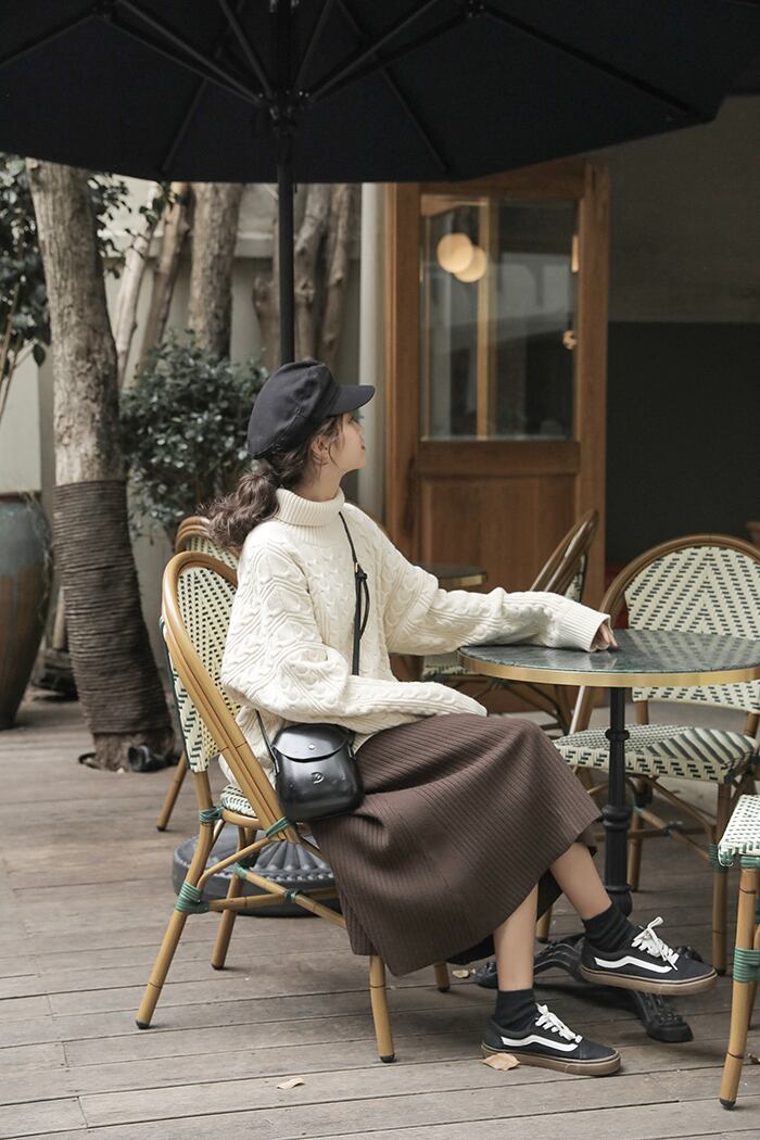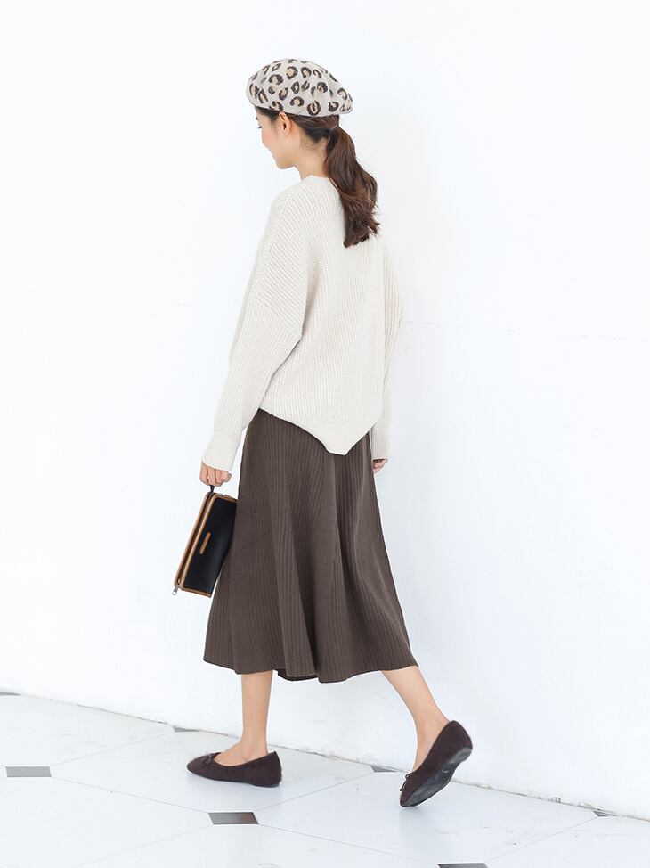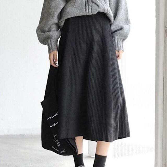 ウエストはゴムで履きやすく、ハイウエストでリブ編みなのですらっとした印象に仕上がります。