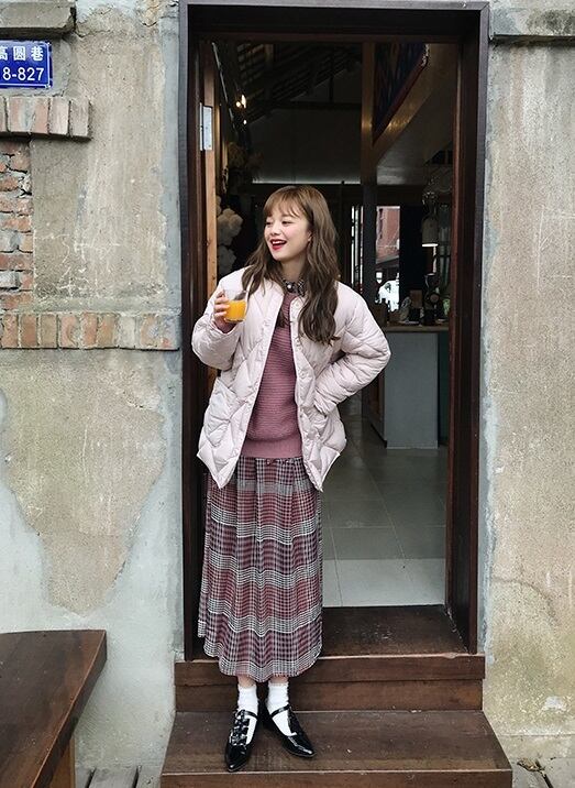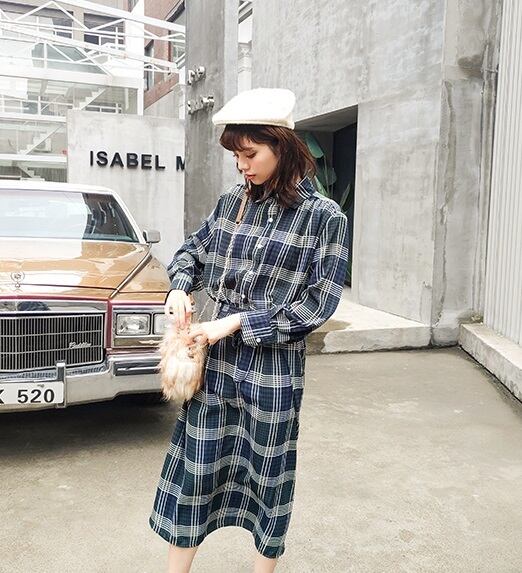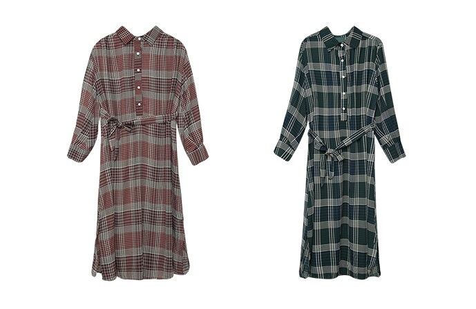 ガーリーになりがちなチェック柄がシックなお色と合わさり、上品なきれいめワンピースに。