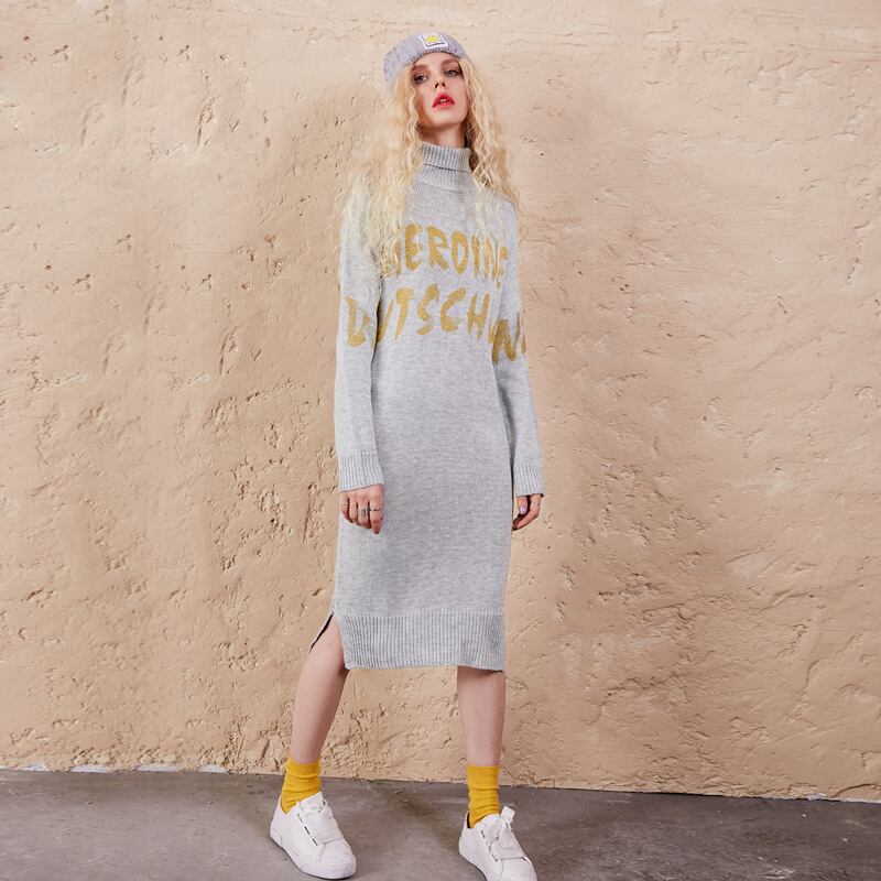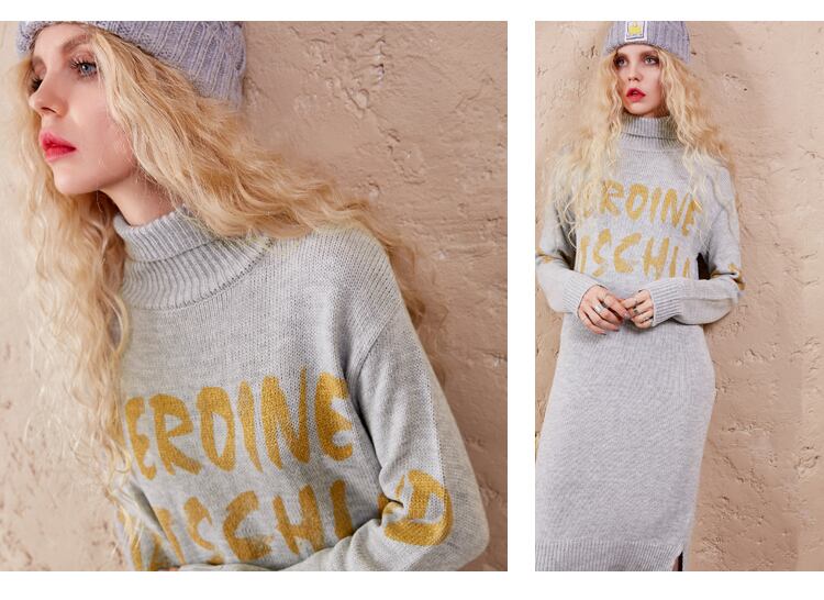 Women Cowl Neck Knit Stretchable Elasticity Long Sleeve Slim Fit Sweater Dress