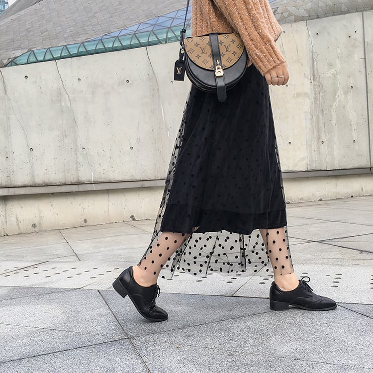 ao-18824_スカート 大きいサイズ 秋 ミモレ丈 ドット シースルー 切り替え