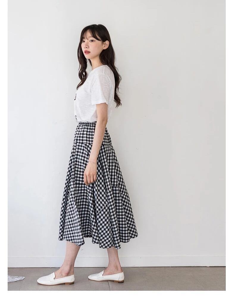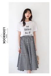 ウエストがゴムになっているので着やすく、ミモレ丈で着痩せ効果も期待できます◎