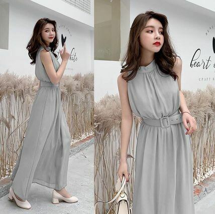 ひらひら揺れるたっぷりのフレアが特徴のノースリーブワンピース。