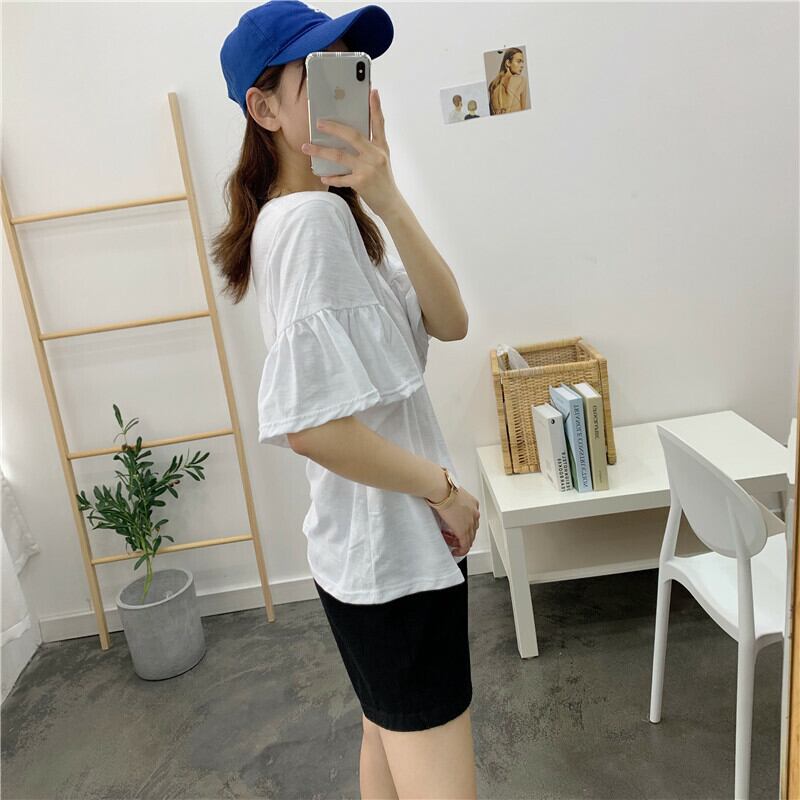 シンプルなホワイトカラーの袖がフリルで、ちょっと可愛らしさもあるアイテム☆
