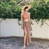 水着 タンキニ 水着セット 上下別柄 フレア ロング丈 エスニック柄 海 ビーチ リゾート 大人かわいい ビキニ 洋服風 プール アースカラー 体型カバー 3点セット X-10024 | K.M-base