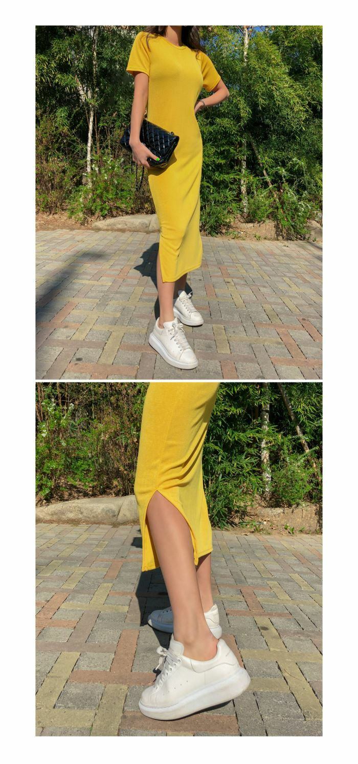 タイト デイリー シンプル 半袖 ミモレ丈 ワンピ―ス トレンドカジュアル タイト サマーワンピース きれいめ 夏 クラシック ノーカラー ノースリーブ 大人 人気 シルエット セクシー 無地 X-10026 | K.M-base