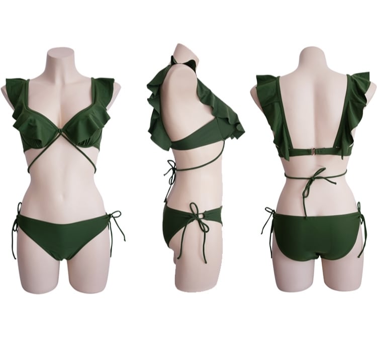 Vネックラインに沿ったフリルが可愛いビキニです!