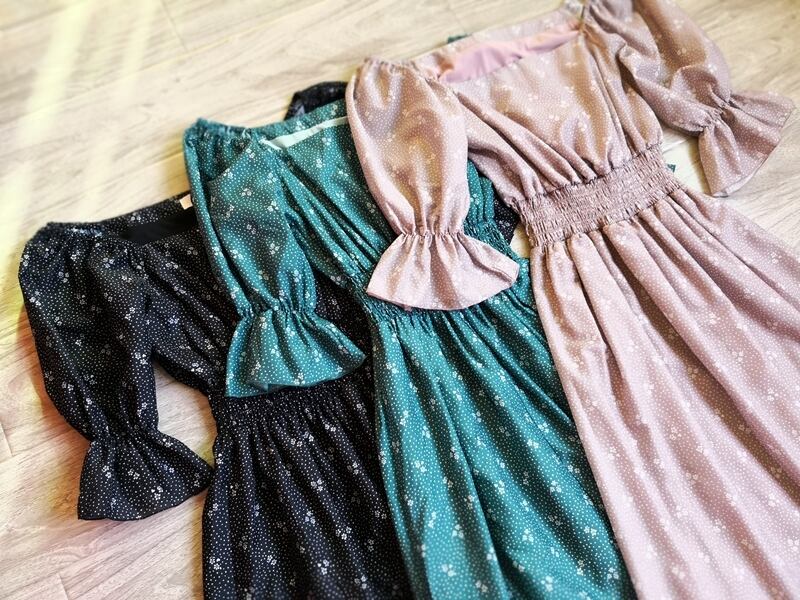 全体的にふんわりした素材で、ウエストはゴム使用。体型カバーもできる嬉しいワンピースです。