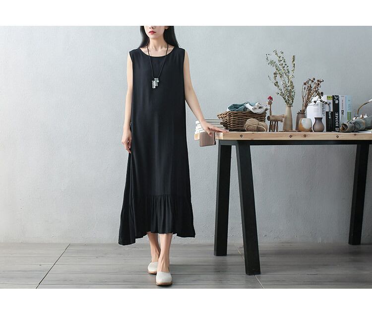 涼しげな生地で、ひらひら揺れるたっぷりのフレアが特徴のノースリーブワンピース。