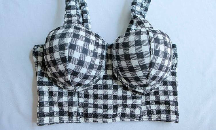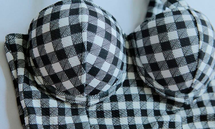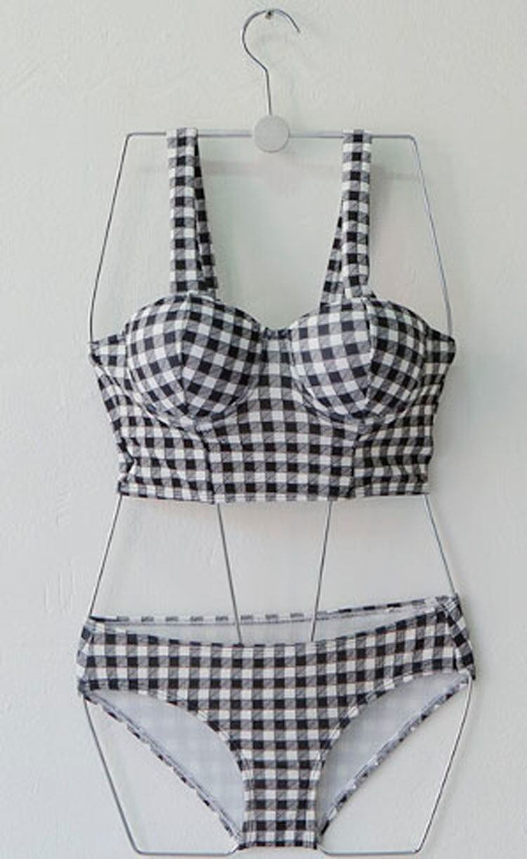 タンキニ風の太ストラップと長めの丈のトップスが体型カバーにも◎