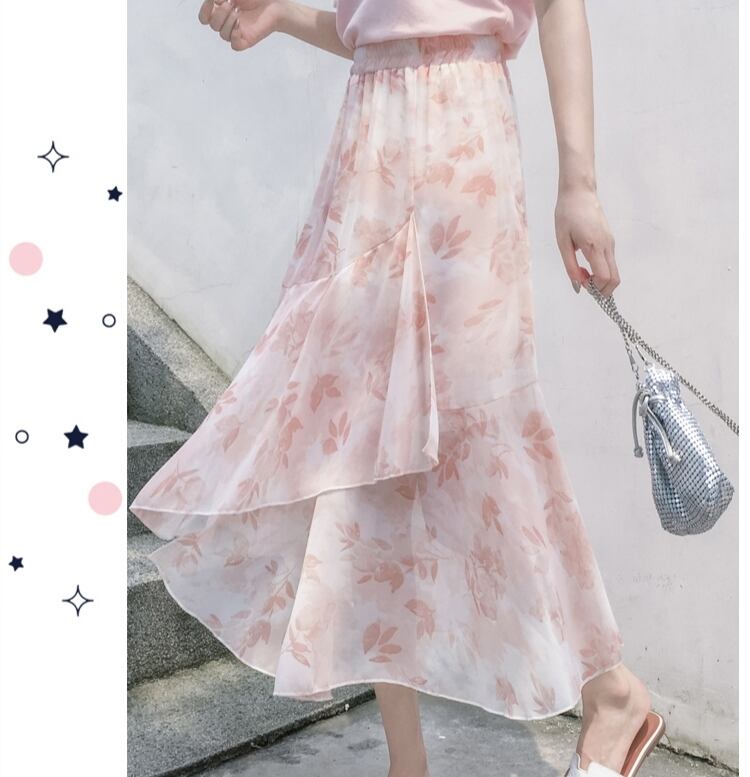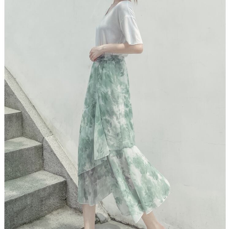 シフォン生地がガーリーで可愛らしい花柄ロングスカートです!