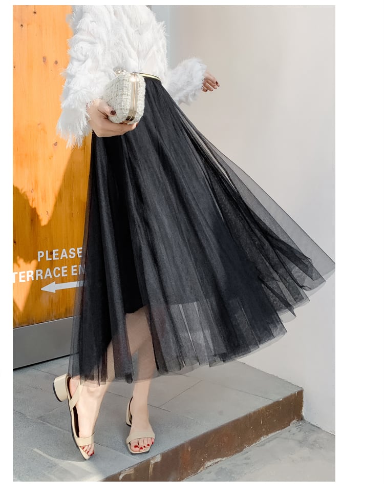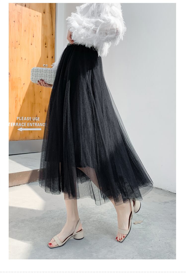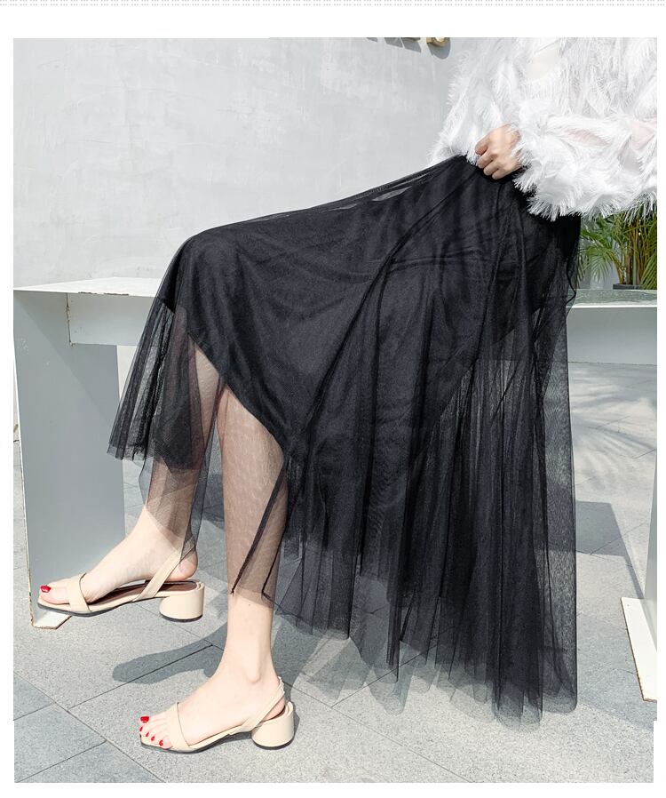 Z-20139 スカート ロングスカート フレア チュールスカート シフォン シースルー ロング丈 ミモレ丈 マキシ丈 ハイウエスト パステルカラー ガーリー シンプル 無地 黒 白 きれいめ レディース 春夏 | K.M-base