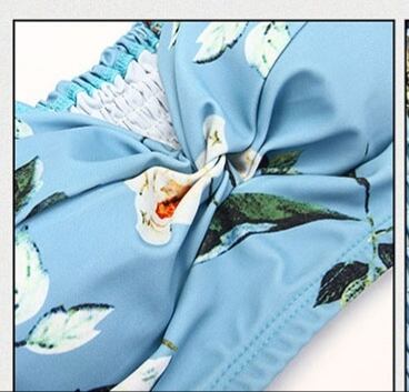 Z-20167 水着 ビキニ ハイウエスト ウエストゴム リボン フリル バンドゥ 太ストラップ ボトムス 花柄 アンティーク ポップ レトロ レディース 夏