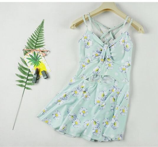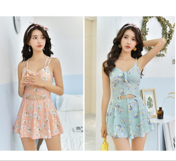 パステルカラーのドットと白い花が上品で女の子らしい可愛さのあるワンピース水着です!